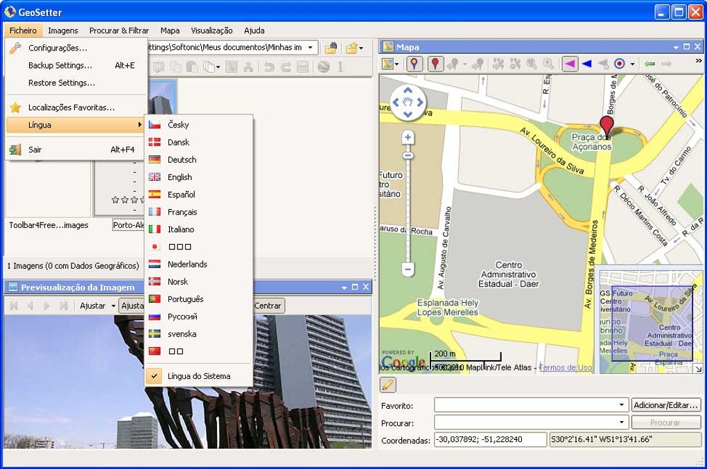 Se quiser, os dados EXIF podem até indicar as coordenadas geográficas onde a imagem foi tirada. O GeoSetter facilita o trabalho de geolocalizar qualquer foto mediante a utilização dos mapas Google.